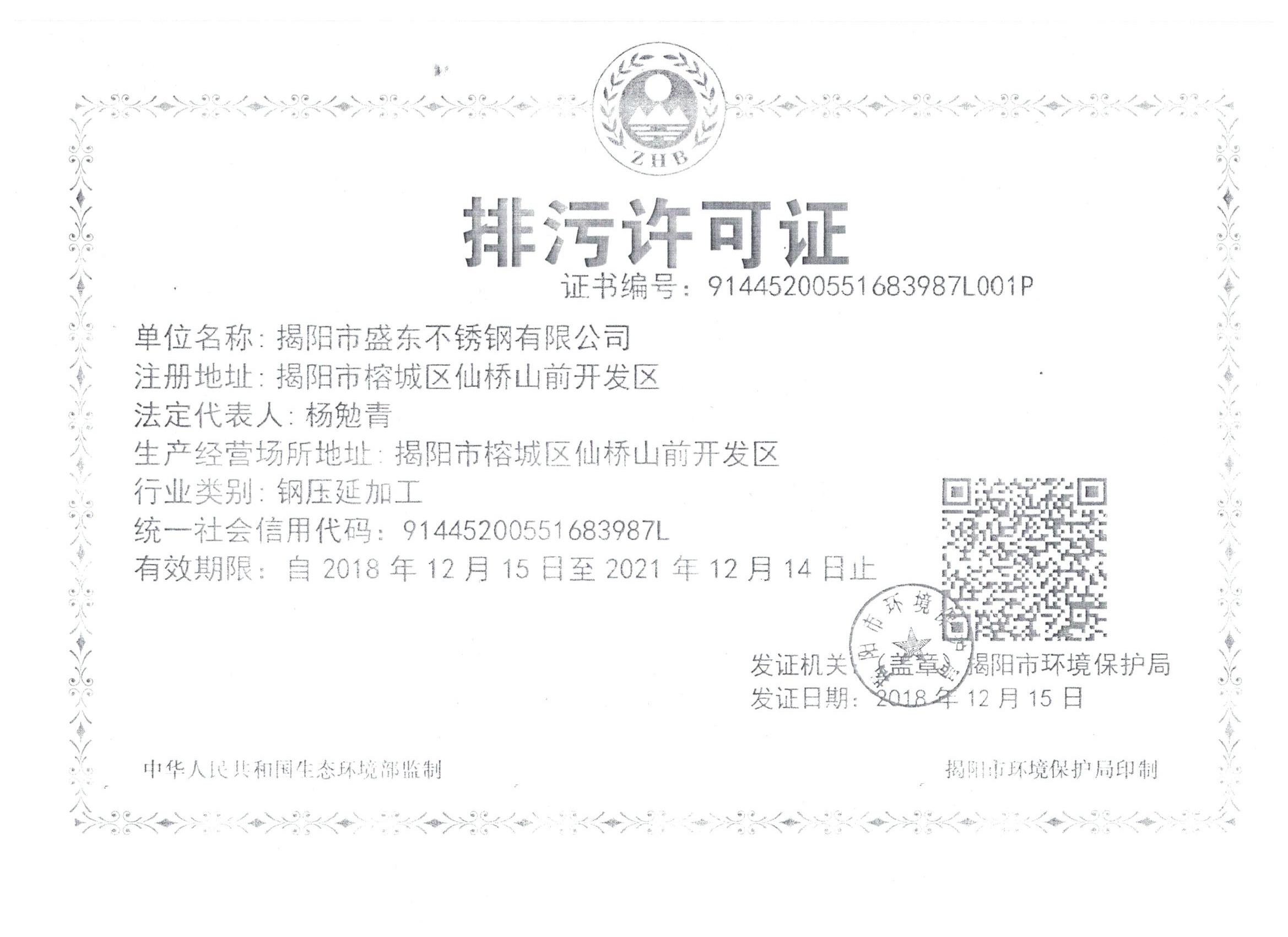 已制訂《揭陽市盛東不銹鋼有限公司突發(fā)環(huán)境事件應急預案》,并于2018年 5月 16日在揭陽市榕城區(qū)環(huán)境保護局備案, 備案編號:44520220180015L 附件鏈接: 《揭陽市盛東不銹鋼有限公司突發(fā)環(huán)境事件應急預案》電子版(點擊)