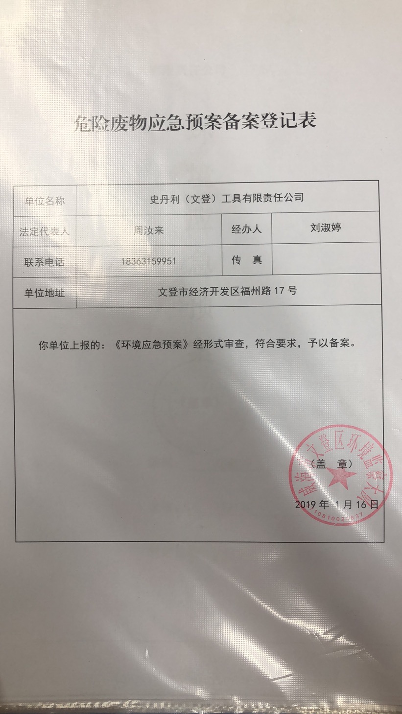 史丹利(文登)工具有限責任公司環(huán)境信息公開表